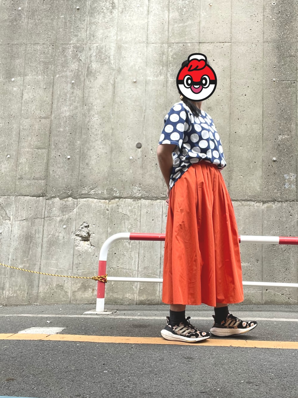 ジーユーで買ったスカートを高頻度ではき回しています。 セルフタイマーで撮ったのですが、うっかり壁の左側に寄り過ぎてしまいました。