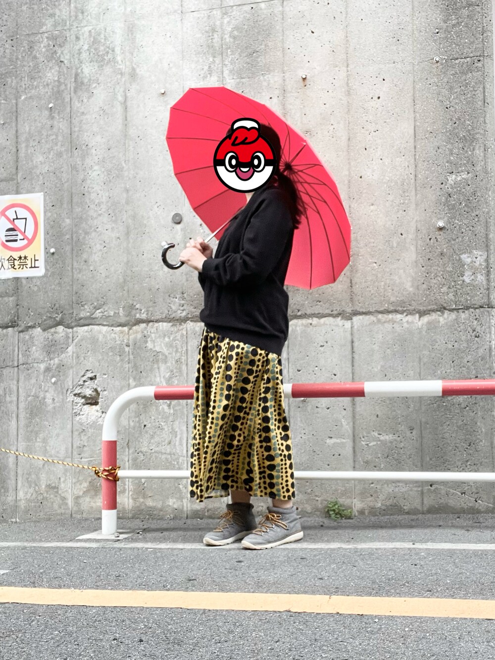 草間彌生さんのカボチャが修復されたとのことなので、直島のカボチャっぽいコーデにしてみました。ディージーワイというブランドの5〜6Lです。楽天市場で買いました。 ちなみに地面が濡れていないのに傘をさしていますが、特にモデル気取りというわけではなくて、ここだけ高架下で雨が降っていないということに気づきませんでした。