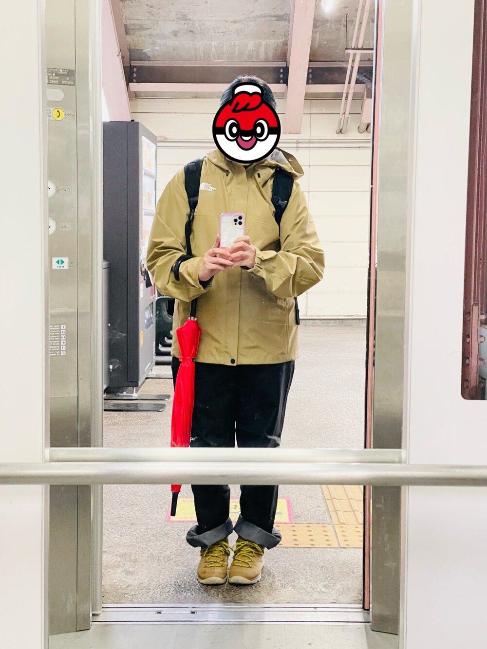 完全防水ゴアテックスコーデです。上はメンズのL、下はメンズのXLです。