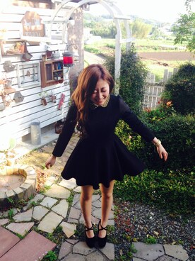 「アイテム(ワンピース、ブラック系)」を使った、anri kukinoさん(レディース・157cm)の春コーディネート