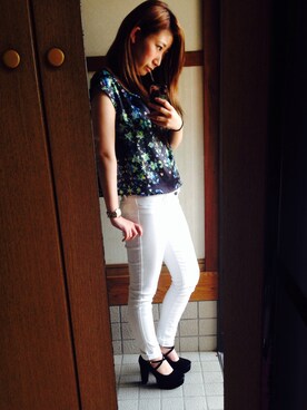 「アイテム(その他パンツ、ホワイト系)」を使った、anri kukinoさん(レディース・157cm)の春コーディネート