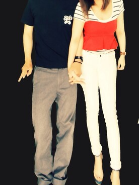 「アイテム(その他パンツ、ブルー系)」を使った、anri kukinoさん(レディース・157cm)の夏コーディネート