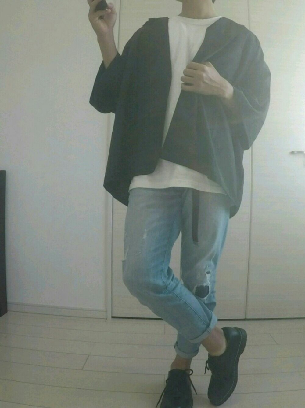 今回はオーバーシャツを使ったコーデです! にしても、日焼けのあとすごい…(  ̄▽ ̄)