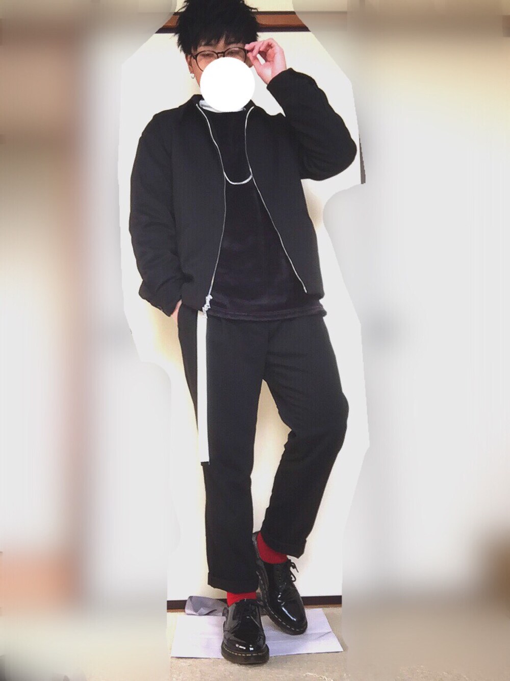 最近買ったHAREのものでコーデしました。 トップスがモコモコしてて肌触りがとてつもなく気持ちい!! 全体的に暗いので赤の靴下で差し色。