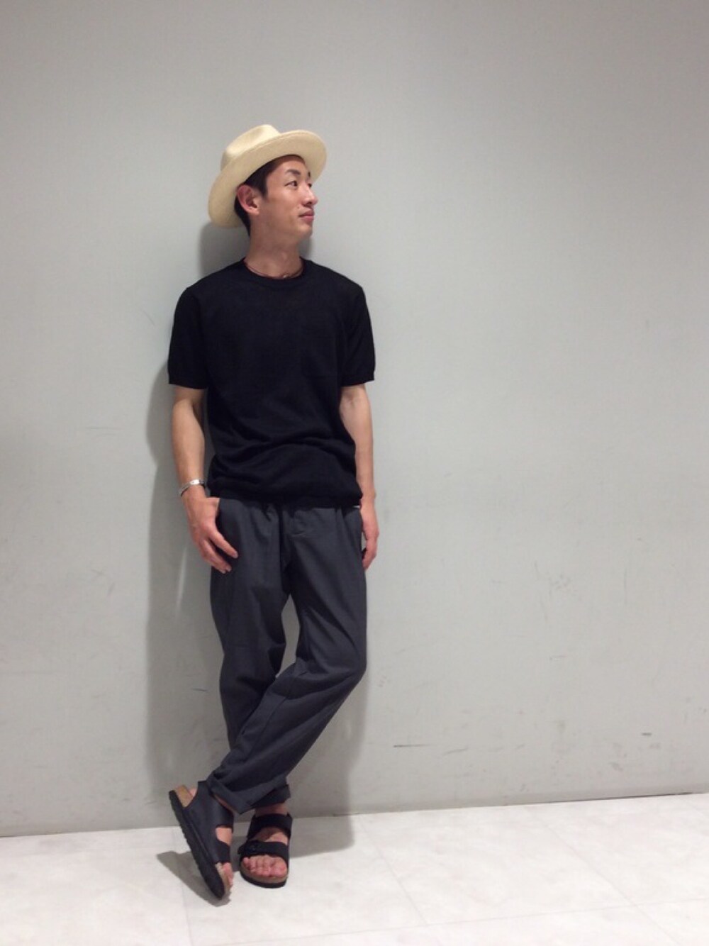 夏のダークトーンコーデ リネンニットTeeで重たくなりすぎないところがポイント