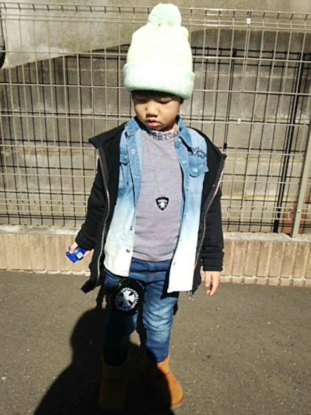 Ripipiのデニムパンツ「デニムニットスキニーパンツ」を使ったコーディネート