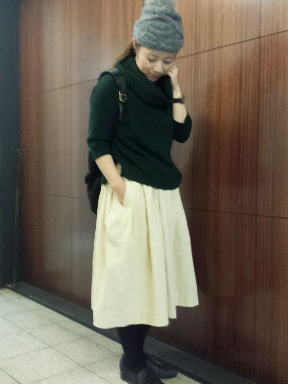 オフタートルニット:MACPHEE ファーニット帽:BEAUTY&YOUTH BYで4年前に買ったファー付ニット帽は毛玉だらけだけど形がどんズバなので手放せない… 気に入ったニット帽は必ず2色買い&毛玉できた時用に来年の分も買うようになりました!