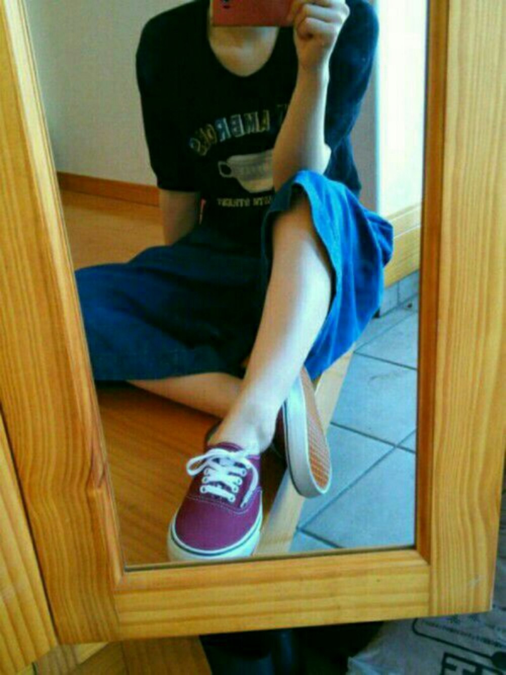 トップスボトムス両方ともw closetです 今さらですが靴をしっかり撮りたいので座って撮っています😌📷 このVANSのスニーカーは今日おろしたばかりの新人ちゃんです🐤🐤🐤