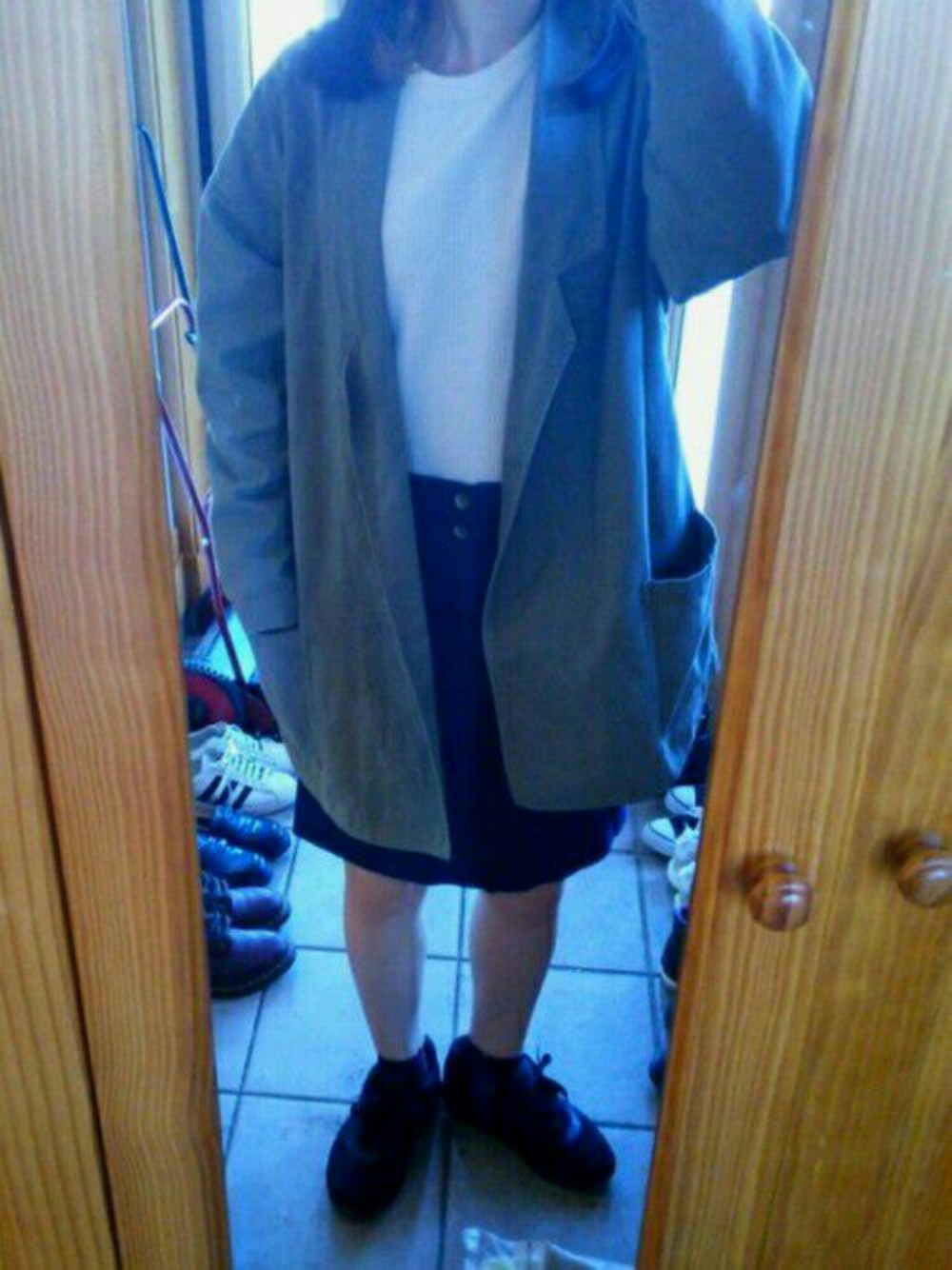 久しぶりのスカートです!!! 学生時代を思い出す。оΟ でも・・・がに股が目立ちます😭 気持ち内股気味に!!!!