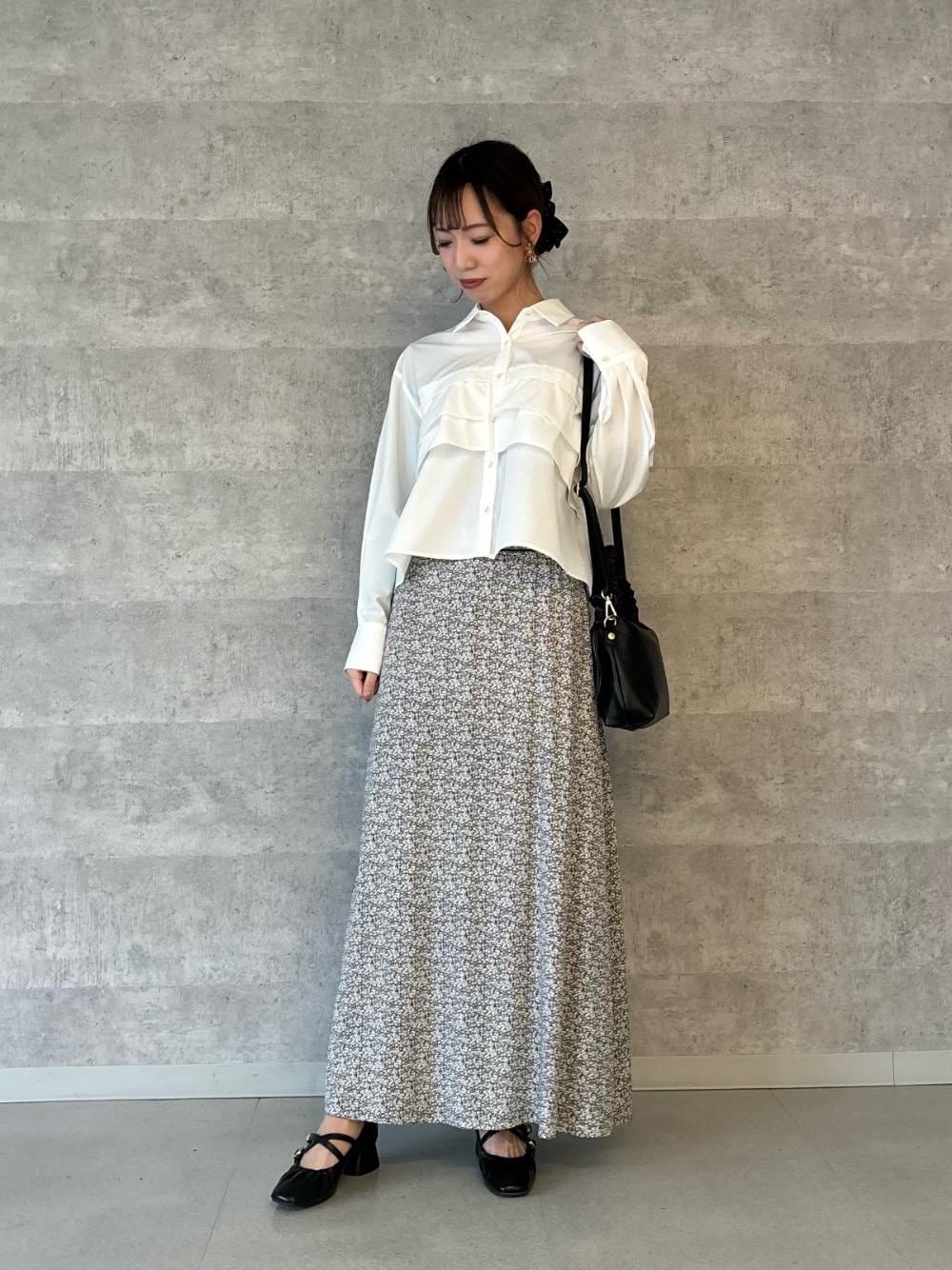 20代後半/160cm/骨格ウェーブ/普段サイズS-M 着用サイズ トップス38ボトム36 【ティアードフリルシャツ】 サイズ感 :ゆったりしている。 素材感: 適度にハリがあり、シワになりづらくお手入れがしやすい生地。 着用感: 後ろ丈が少し長くバランス◎ 【ミニフラワープリントギャザースカート】 サイズ感 : ゆったりしているが、ウエストゴムで楽ちん。 素材感: レーヨン素材を使用した柔らかい。 着用感:フレアで広がっているが、スタイル抜群に見えます!