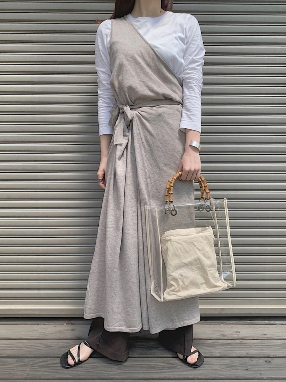moeのワンピース「ワンショルダーニット巻ワンピース/3wayニット生地ワンショルダー袖なし着回し」を使ったコーディネート