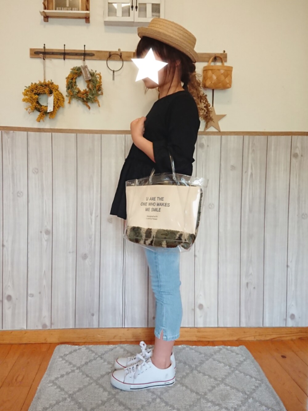 パンツ最後の記念にコーデ★ 去年買ったこのブランシェスのパンツ めーーっちゃくちゃパツパツなのを無理やり履かせて最後のコーデを撮りました😂 去年たくさん履いたなぁ😢ありがとう👖。 また今年用も買わないとな~ クリアバッグも中に入ってるクラッチバッグもカンカン帽もDAISO産👍便利! 今日は朝からロボとーちゃんだ♪ 大好き!感動するやつ😢✨