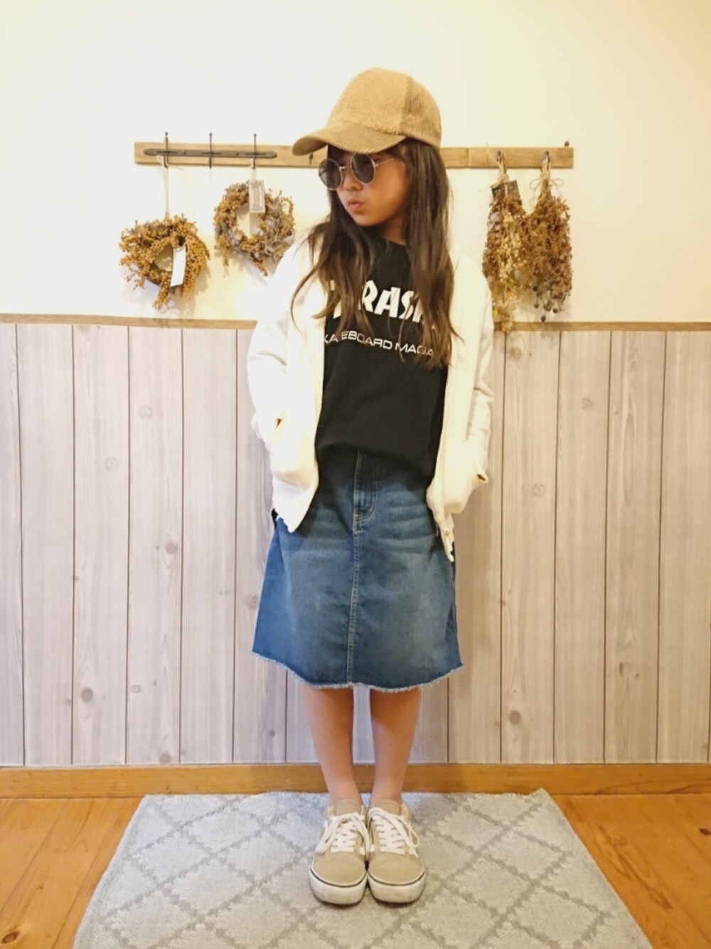 #やっぱりストリートが好き 最終日 最後はスカートでスト系。たぶんw Tシャツは私のだけど今年の夏は みんなで着回しました👩👦👧♥️1石3鳥 あみがラプンツェルを書いて持ってきたのでおすそわけ✨← ろくろっ首かな?と一瞬思ったけどww ドレスは?って聞いたら 「あ、忘れてた😉💗」 もうこれで完成らしい笑