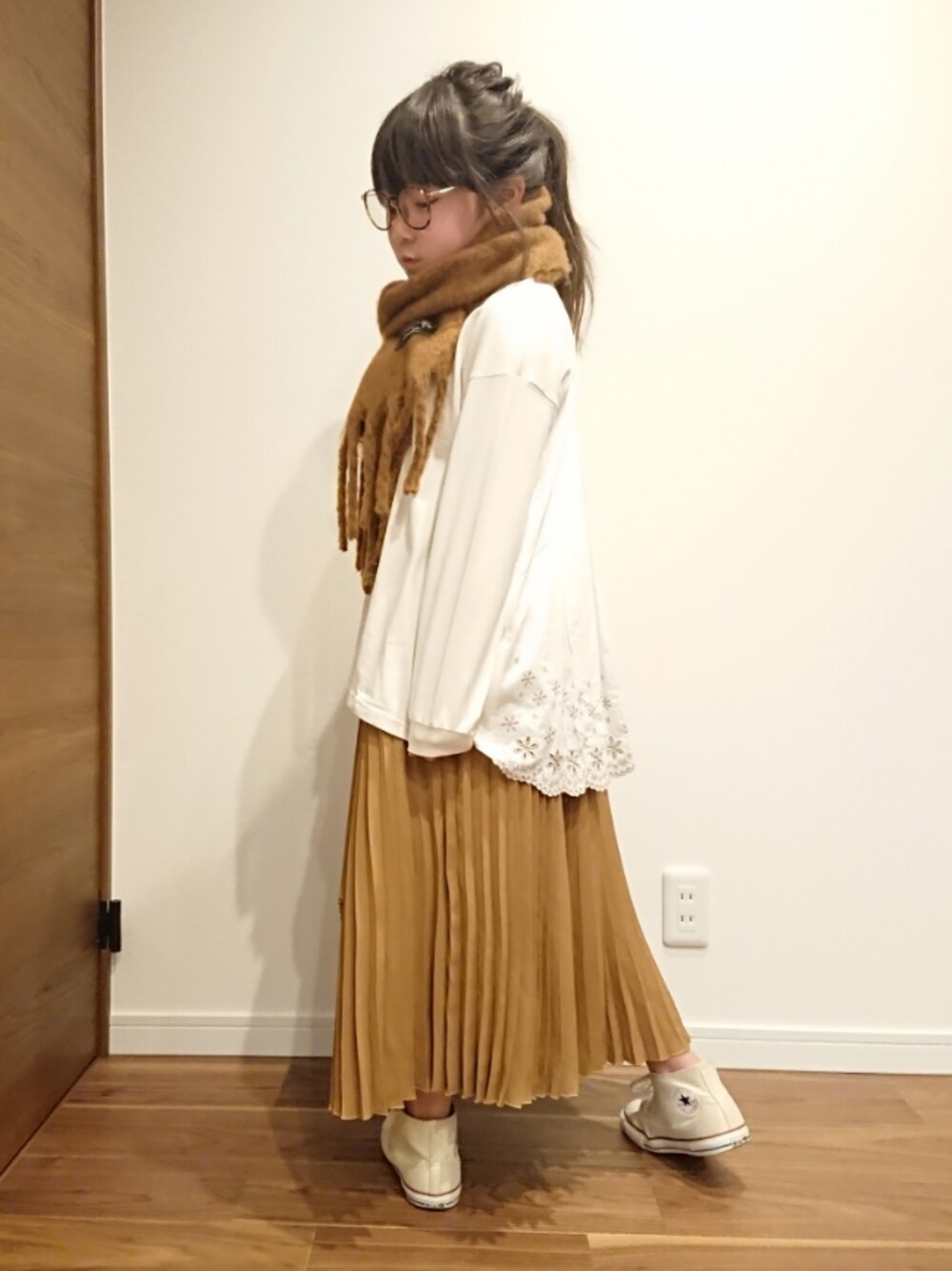 ku-amiのスカート「アシンメトリープリーツスカート」を使ったコーディネート
