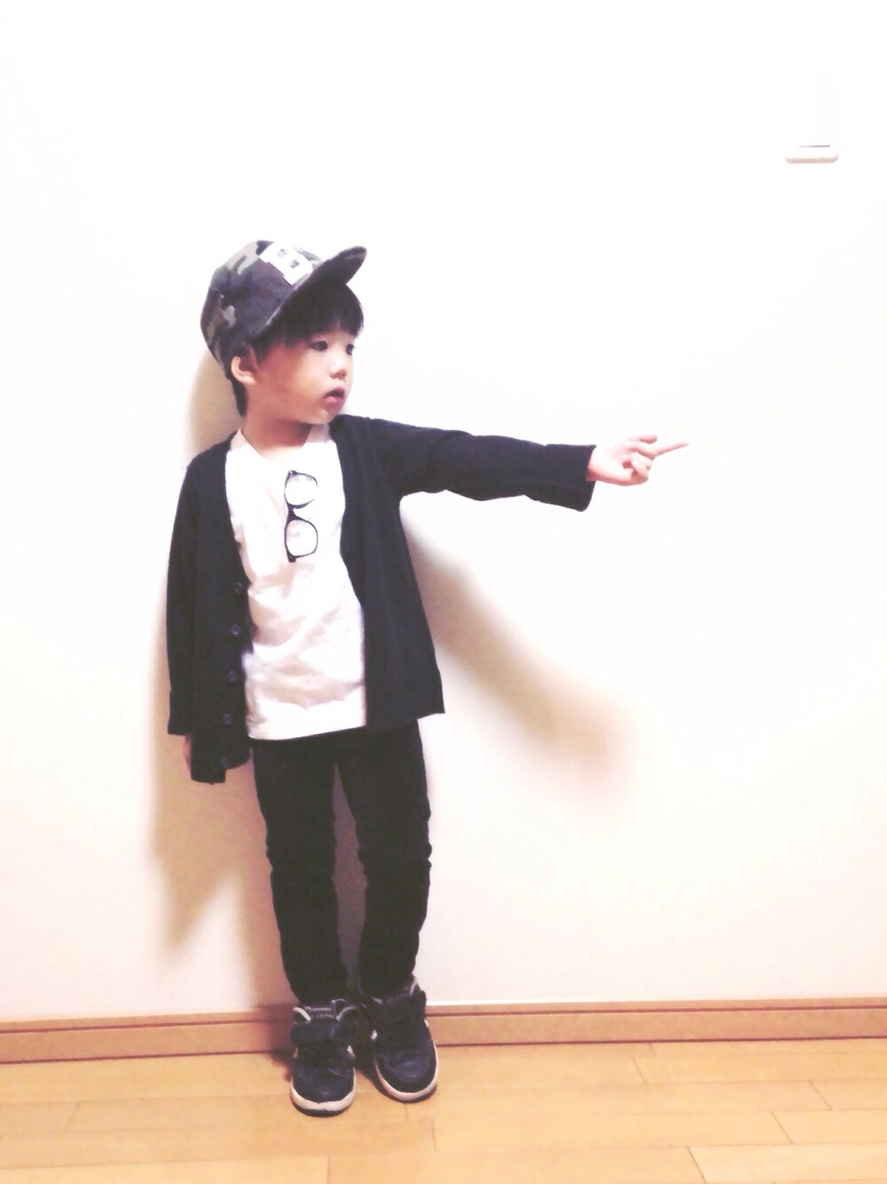 hiina のキャップ「迷彩×Bモチーフキャップ」を使ったコーディネート