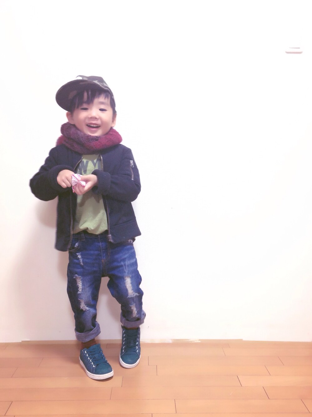 hiina のキャップ「迷彩×Bモチーフキャップ」を使ったコーディネート