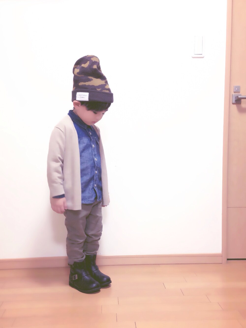 hiina のニットキャップ/ビーニー「アゼ編みニットワッチ」を使ったコーディネート