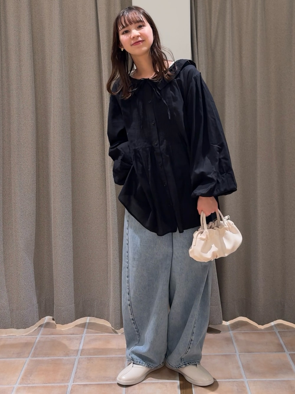 kurumiのショルダーバッグ「ギャザーハンドルミニショルダーバッグ」を使ったコーディネート