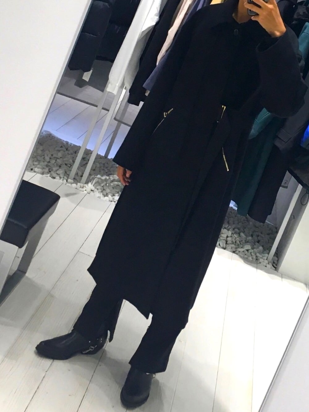 CULLNI ステンカラーコート 腰のガチャベルトと金の装飾がめっちゃ良いです✨ 着る時も首のボタンと腰のベルトだけでめっちゃ楽に着れるしオススメです! 俺は一目惚れして今まで作ってなかったクレジットカードを作ってまで買いました!笑