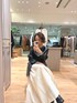 フェイクレザーのジャケットはノーカラーでハードすぎないのがポイント! スカートは素材感に特徴があって、おしゃれ見え。