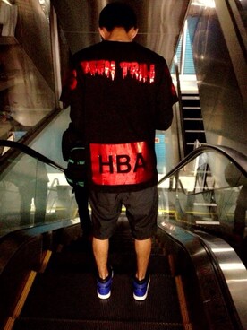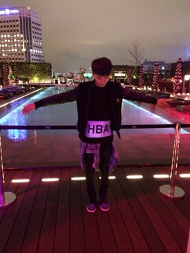 「HBA(Tシャツ/カットソー、ブラック系)」を使った、柯佑さん(メンズ)の夏コーディネート