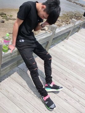 「AIR JORDAN(エアジョーダン)のアイテム(スニーカー、ブラック系)」を使った、柯佑さん(メンズ)の夏コーディネート