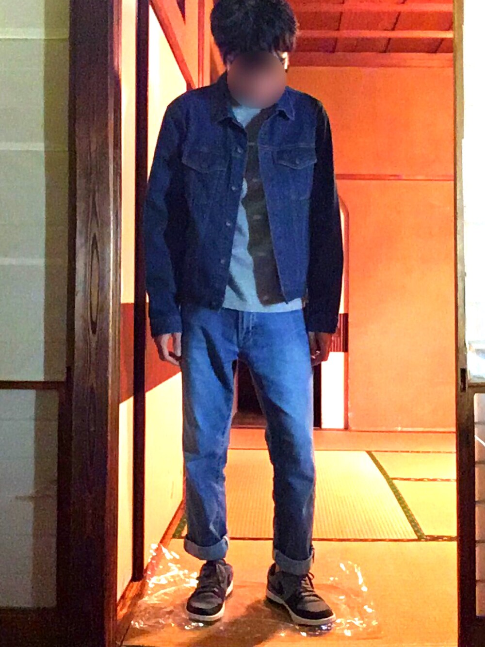デニムジャケットの季節がやって来ました👏 青とグレーだけで統一👧 昨日に引き続きストリート系です(^ ^) (ポーズダサい😂)