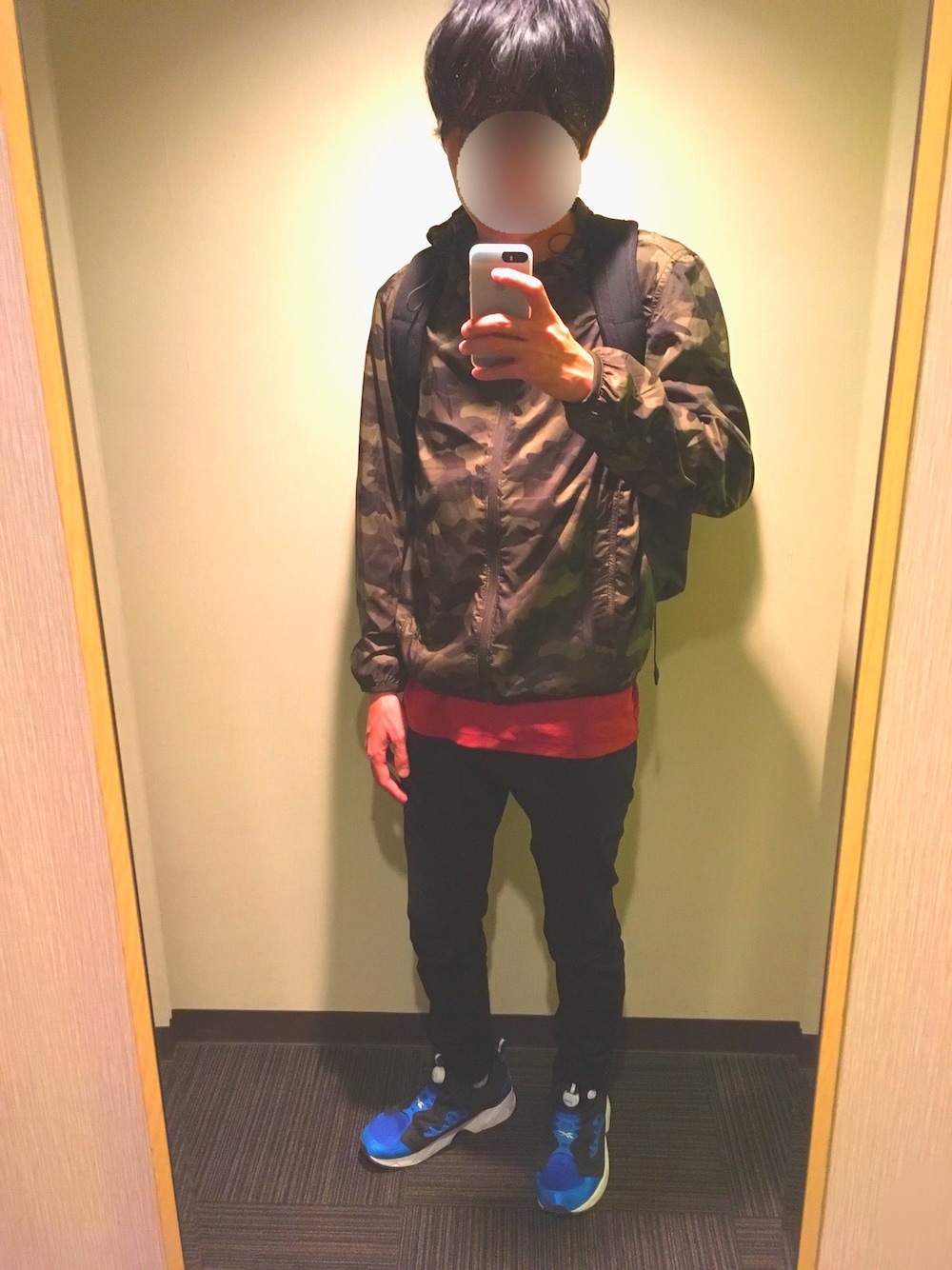 背景がいつもと違いますが、京都のホテルで撮りました⛩ 完全にアウトドア笑 これで自転車で嵐山やら二条城やら京都の至るところ走ってました(>人<;) ちなみ今から清水寺の紅葉のライトアップ見て来ます🍁 迷彩✖️ボルドー✖️黒✖️青 の組み合わせ☺️