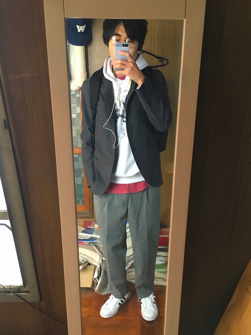 お久しぶりです。 4ヶ月ぶりの投稿笑 完全に面倒くさがって、見る専になってました😌 いいね、フォローくれた方ありがとうございます😊 暇な時遊びに行きます。 春をイメージ🌸 グレーのテイラード✖︎白パーカー✖︎ピンクのカットソー✖︎グレーのスラックス✖︎白のスニーカー