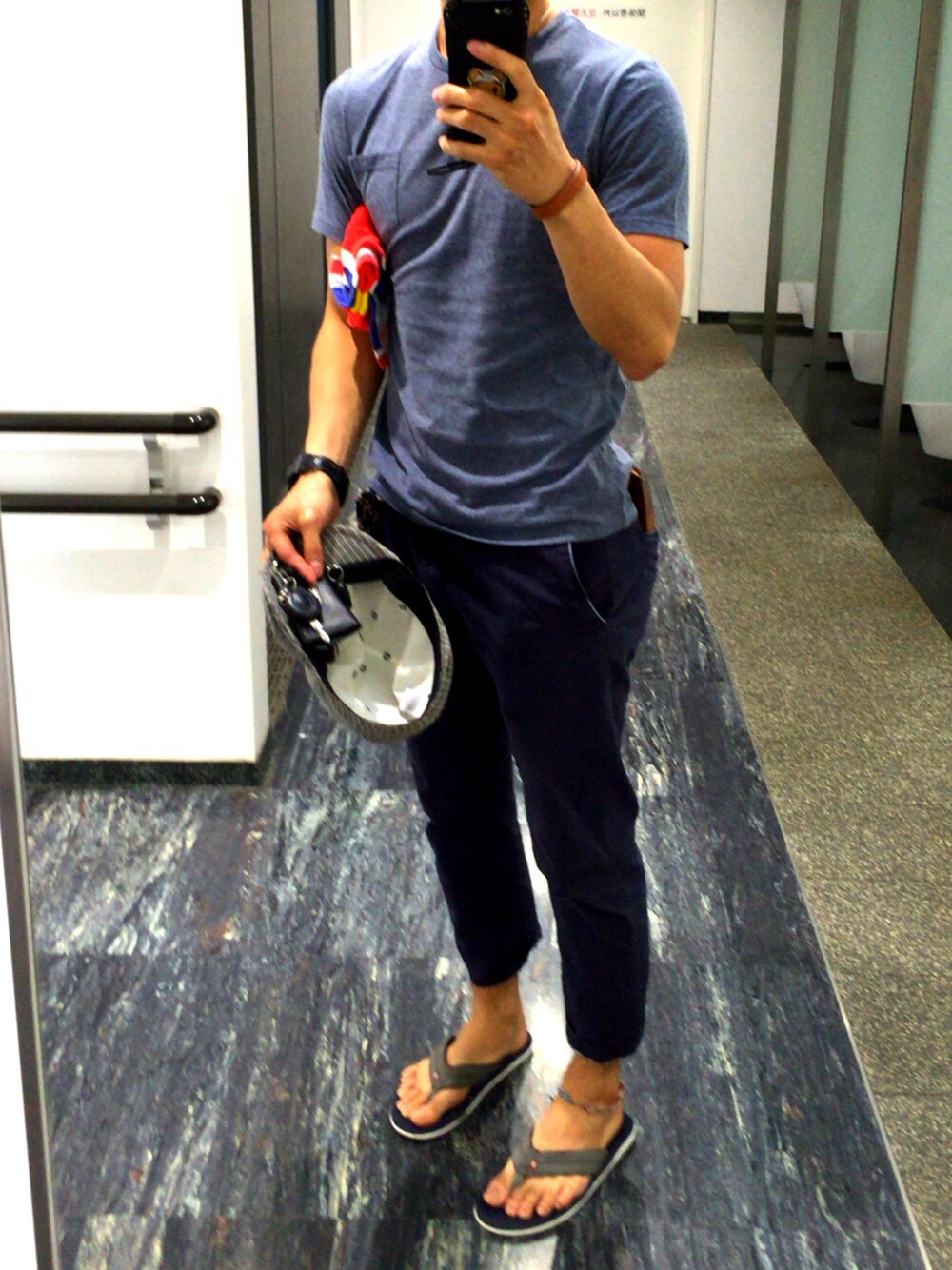 とある高速道路のSA 全身ブルー系 顔洗って帽子脱いじゃってる