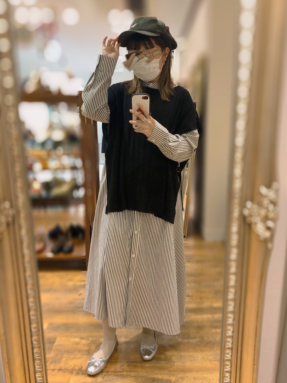 しーのシャツワンピース「ストライプスタンドカラーシャツワンピース」を使ったコーディネート
