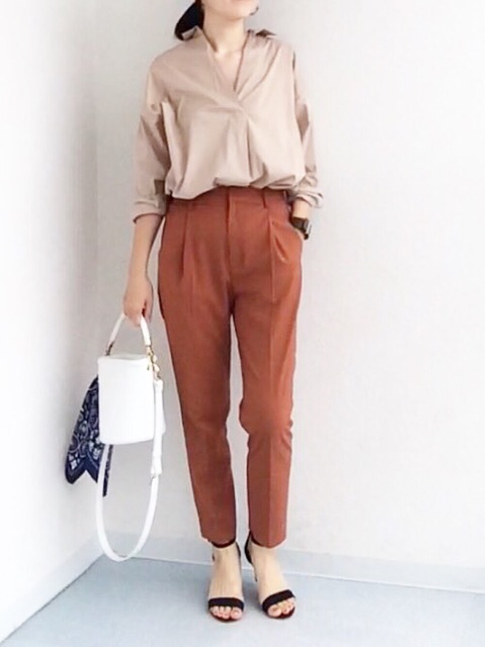 2016/08/27 今日はお気に入りのシャツとパンツで ベージュとテラコッタの グラデーションコーデ😊 バッグは黒にしたかったけど、 出掛けにバタついて、変える暇もなく…orz とりあえず差し色係に任命しました。 ホワイト様々m(__)m