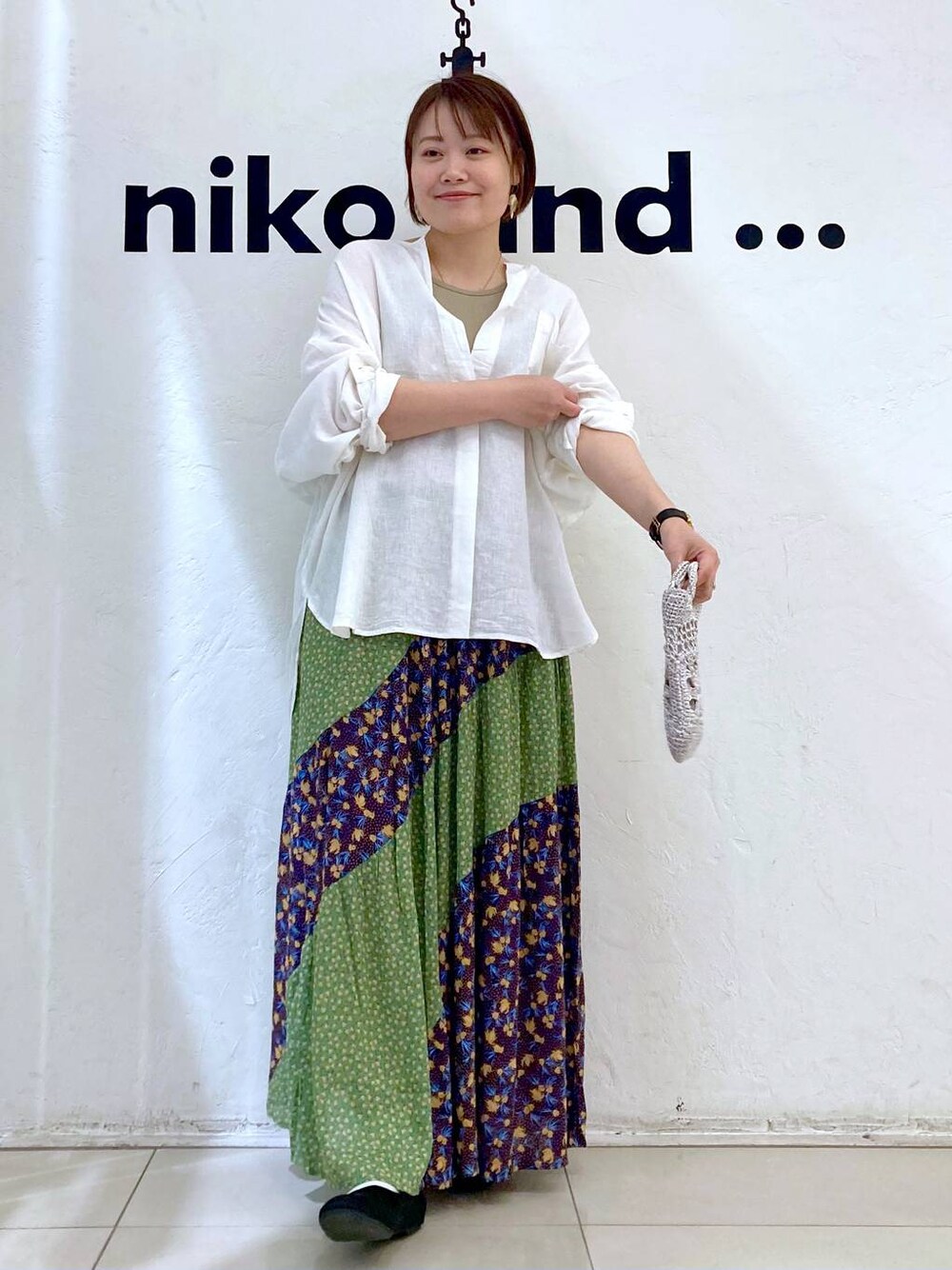 大人の柄スカートコーデ ▶︎シャツ→Lサイズ リネンリヨセルでサラッと真夏も涼しく着れるブラウス! 後ろが長めでラウンドしている裾なので、 インせずに流れるようなシルエットが作れます! 長袖なのでこれからのシーズンは日焼け予防にもおすすめ! 柄のボトムスが映えるブラウスです😊 ▶︎スカート→Lサイズ ウエストは総ゴムで伸び感もよくて履きやすい 切り替えのデザインがかわいいスカート! すっごく涼しい、少し透け感のある素材感! ウエストよりほんの少し腰に落として履くとバランスよく履けます! サイズ感はウエストがしっかり伸びるので、 Mでも楽に履けますが、 身長162cmのカワモトは着丈はLがマストです! ♡ニコアンドゆめタウン広島店イベント♡ 4月14日(日) キャッシュレスゆめカード値引き積立額5倍! 4月15日(月) 15市ゆめカード値引き積立額5倍! ♡Instagram♡ staff boardもInstagramもどちらも フォローお待ちしております♪