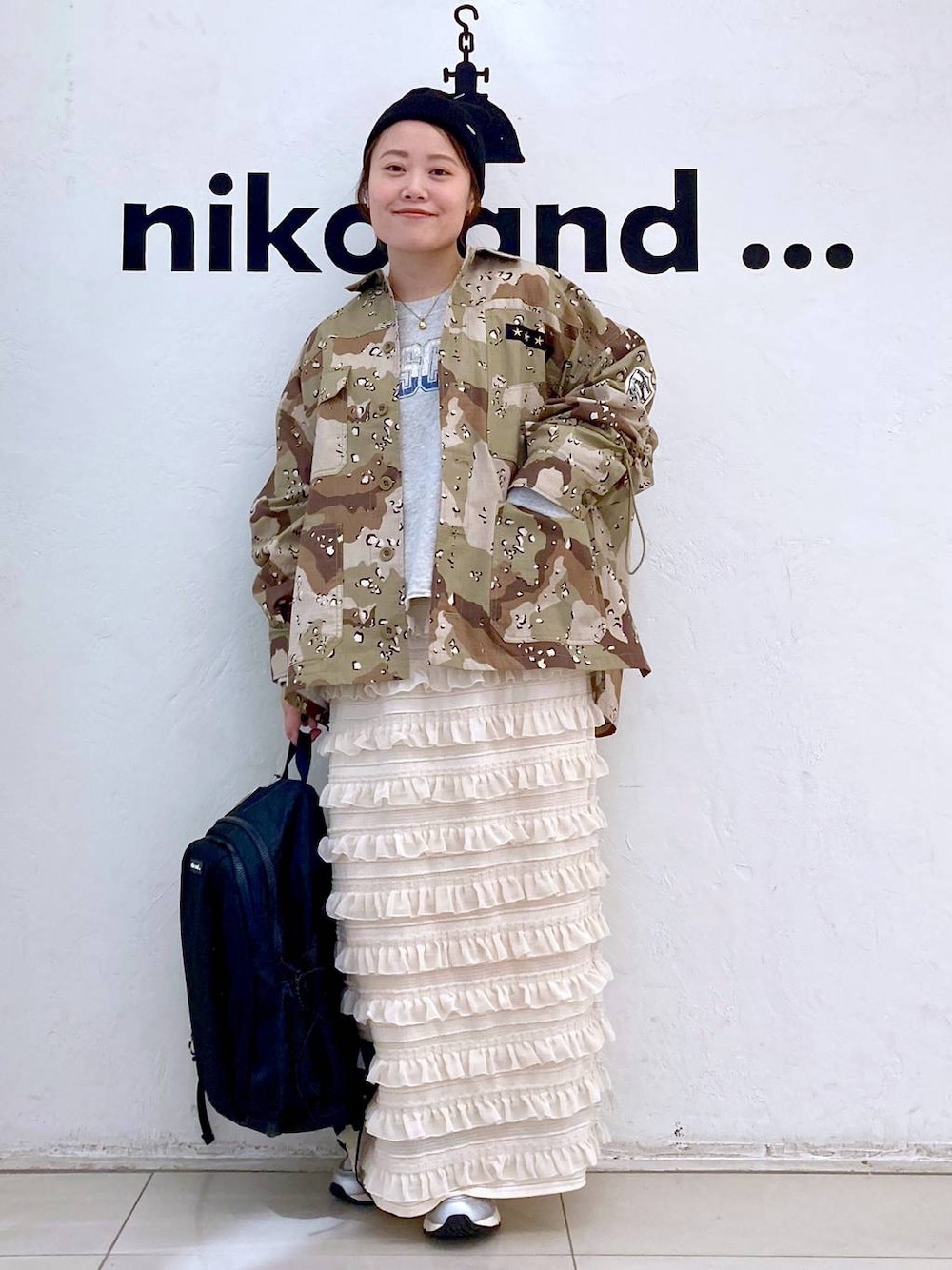 秋はミリタリーが着たい! 甘辛ミックスコーデ! ▶︎ジャケット→フリーサイズ シャツとアウターの間くらいの薄さでハリのあるミリタリージャケット! ゆったりなのでなかにスウェットも余裕で着れました! 胸と左袖のワッペンがめちゃくちゃ可愛いです❤️ ※ゆめタウン広島店にはお取り扱いはありません🙏 ▶︎スウェット→Mサイズ 掠れたプリントと刺繍が可愛いスウェットプルオーバー! 一度着てみて!すごく柔らかいから🙌 ▶︎スカート→フリーサイズ 新作のフリルが可愛いタイトスカート! ウエストは総ゴムで楽に履けます! 裏地が付いてて透けは気になりませんでした!🙌 身長162cmの私で、踵に掛かるくらいで長めでいい感じ! ♡Instagram♡ staff boardもInstagramもどちらも フォローお待ちしております♪