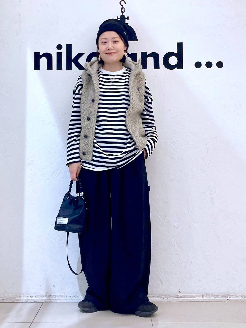 ボーダー好きの大人カジュアルコーデ ▶︎ロンT→Lサイズ 新作のミニパイルのプルオーバー! ゆったりオーバーサイズですが、 サラッとしたパイルで華奢見えするタイプのロンT! ベストの丈感があまり長くないので、 ロンTで長さが欲しくてLサイズをチョイス! ▶︎ベスト→Mサイズ 定番でいいものを長く派なら、このベスト! ジムフレックスのボアベストはとにかくシルエットが綺麗! フードの立ち上がりやアームホールが腕をスッキリ見せてくれるカッティングです! ▶︎パンツ→Lサイズ モードノームコアの人気のパンツが再入荷中!! サラッと軽いヘリンボンのワイドパンツで、 2タック入っているので、 ワイドなシルエット! ウエストは前ジップの後ろゴムで履きやすいです! 身長162センチの私はウエストと着丈的にLサイズがマスト! ♡ニコアンドゆめタウン広島店イベント♡ 12月29日(日)キャッシュレスゆめカード値引き積立額5倍! ゆめクレジットご請求時5%off! ♡Instagram♡ staff boardもInstagramもどちらも フォローお待ちしております♪