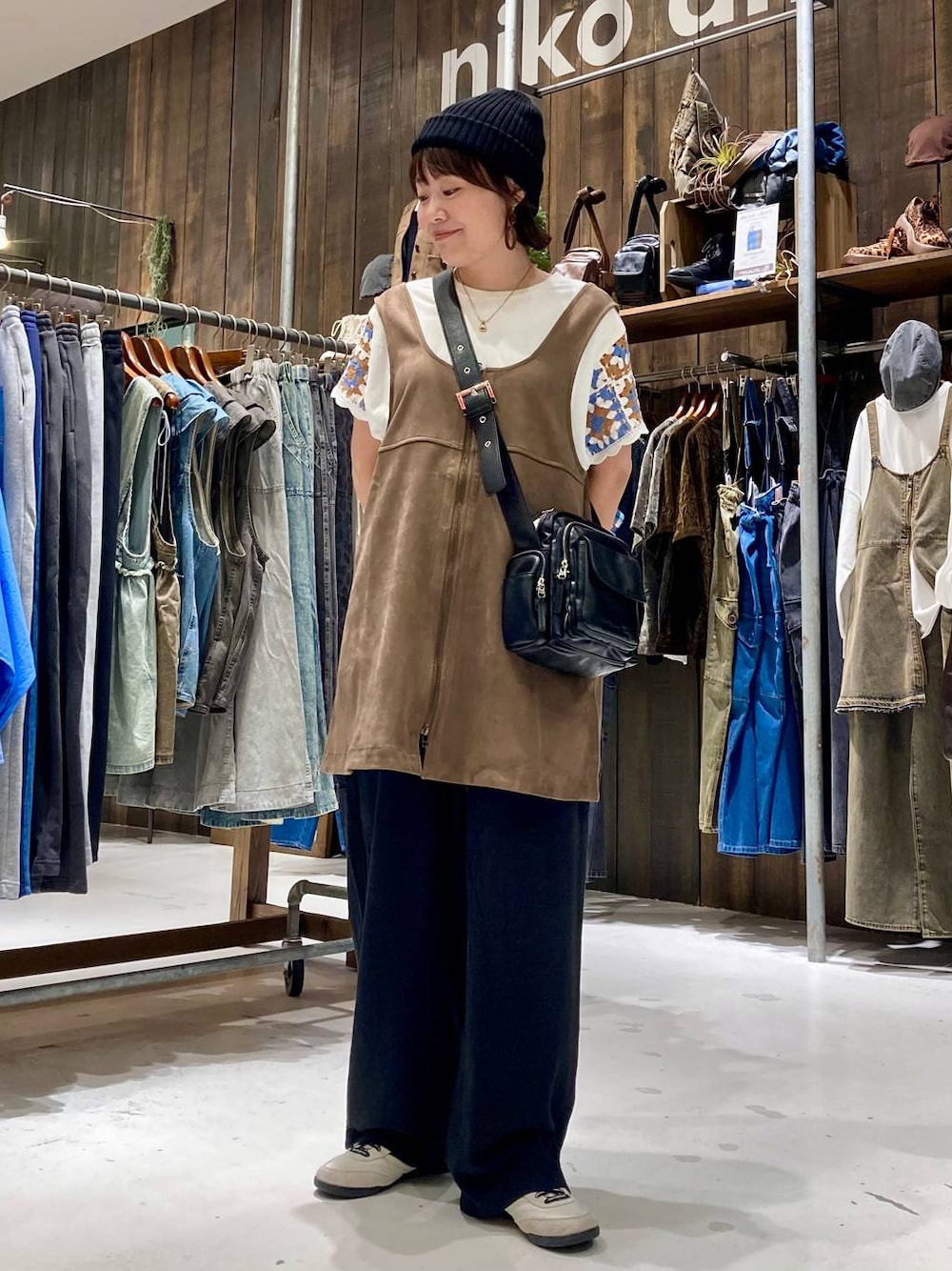 暑い日もOK!秋コーデ! ▶︎Tシャツ→Mサイズ お袖のクロシェ編みの切り替えが可愛いTシャツ! 程よく薄手の生地感で真夏も着やすい😊 クロシェ編みにブラウンのカラーが入っているので、 秋を意識して羽織にブラウンを合わせました! ▶︎ワンピース→フリーサイズ 新作のスウェットワンピース! ワンピースといっても、162センチの私は、 長めのベスト感覚で着れる雰囲気! 素材感が少し秋っぽさをプラスしてくれて、 体型カバーにもお勧めです! ギャザーベストのようにふわっと広がらないので、 可愛らしさを抑えたい方におすすめです! ダブルジップなのが嬉しいポイント! ▶︎パンツ→フリーサイズ とろみのあるペインターパンツ! 通気性抜群なストレートのパンツで、 ウエストは総ゴムでウエストも楽ちん✨ ベーシックで系統問わず合わせやすさ抜群です! ♡ニコアンドゆめタウン広島店イベント♡ 8月15日(金)〜9月28日(日) 家具フェア andSTポイント20%ポイント還元! 8月31日(日) キャッシュレス5倍! ゆめカードクレジットで5%off! ♡Instagram♡ staff boardもInstagramもどちらも フォローお待ちしております♪