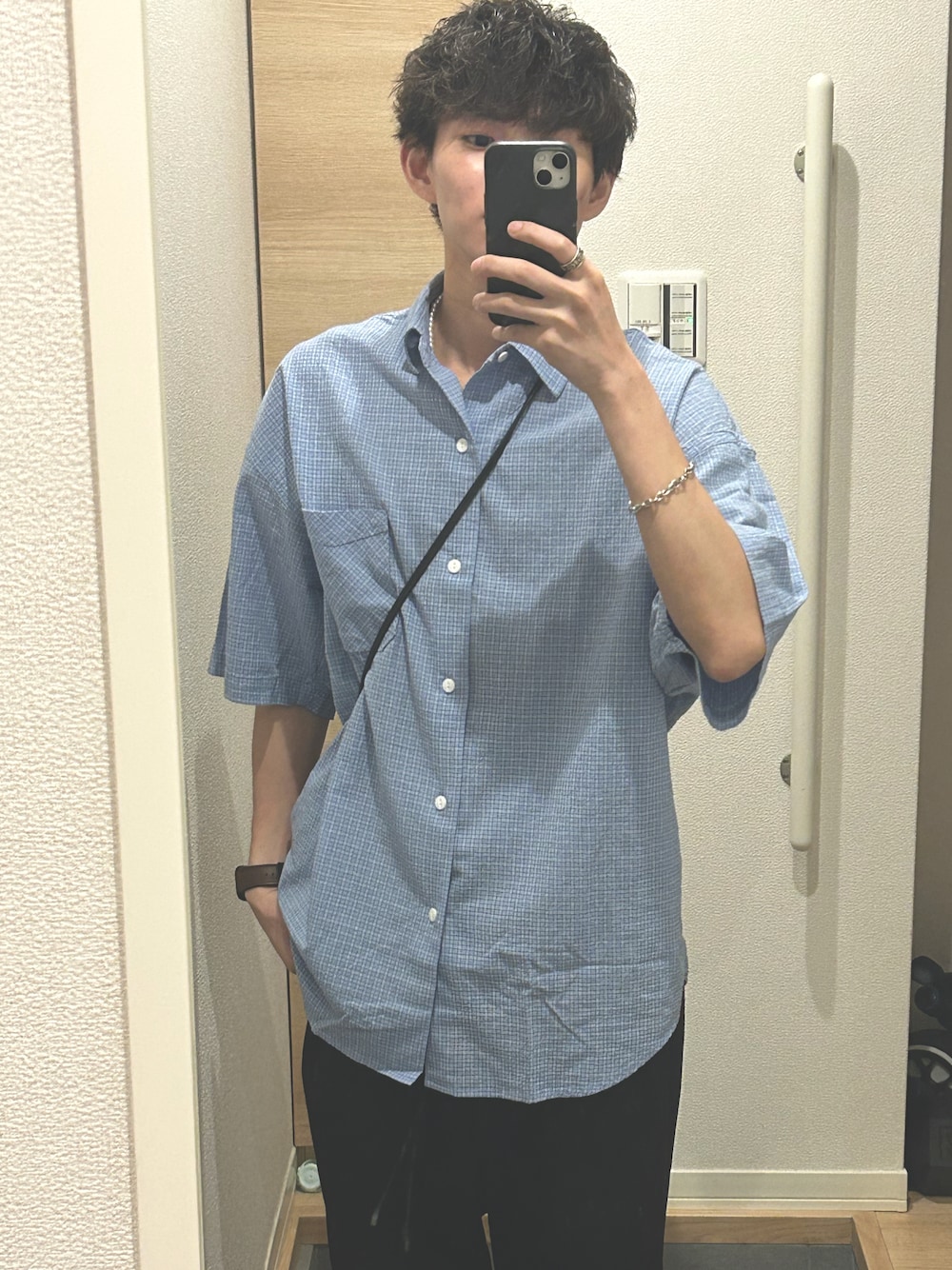 YASUのシャツ/ブラウス「HINSON/ヒンソン レギュラーカラー ショートスリーブチェックシャツ/シワ加工/リラックスフィット」を使ったコーディネート
