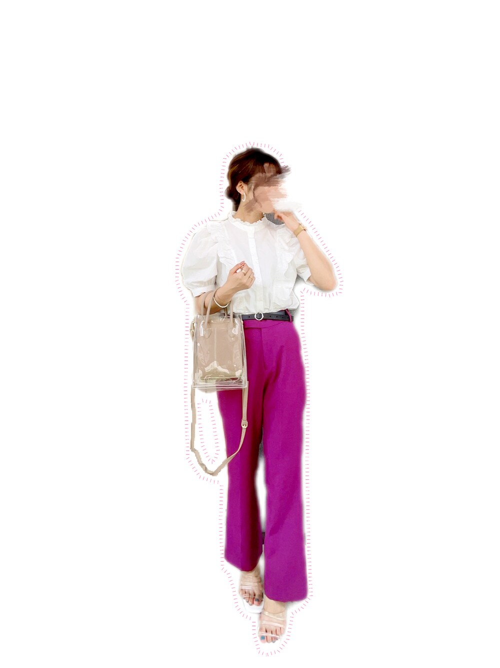🤍💜🤎 今日めちゃくちゃ暑い!!!🔥 ひさびさに晴れましたね🌞 お気に入りのカラーパンツ🟣と かわいいブラウスの相性◎