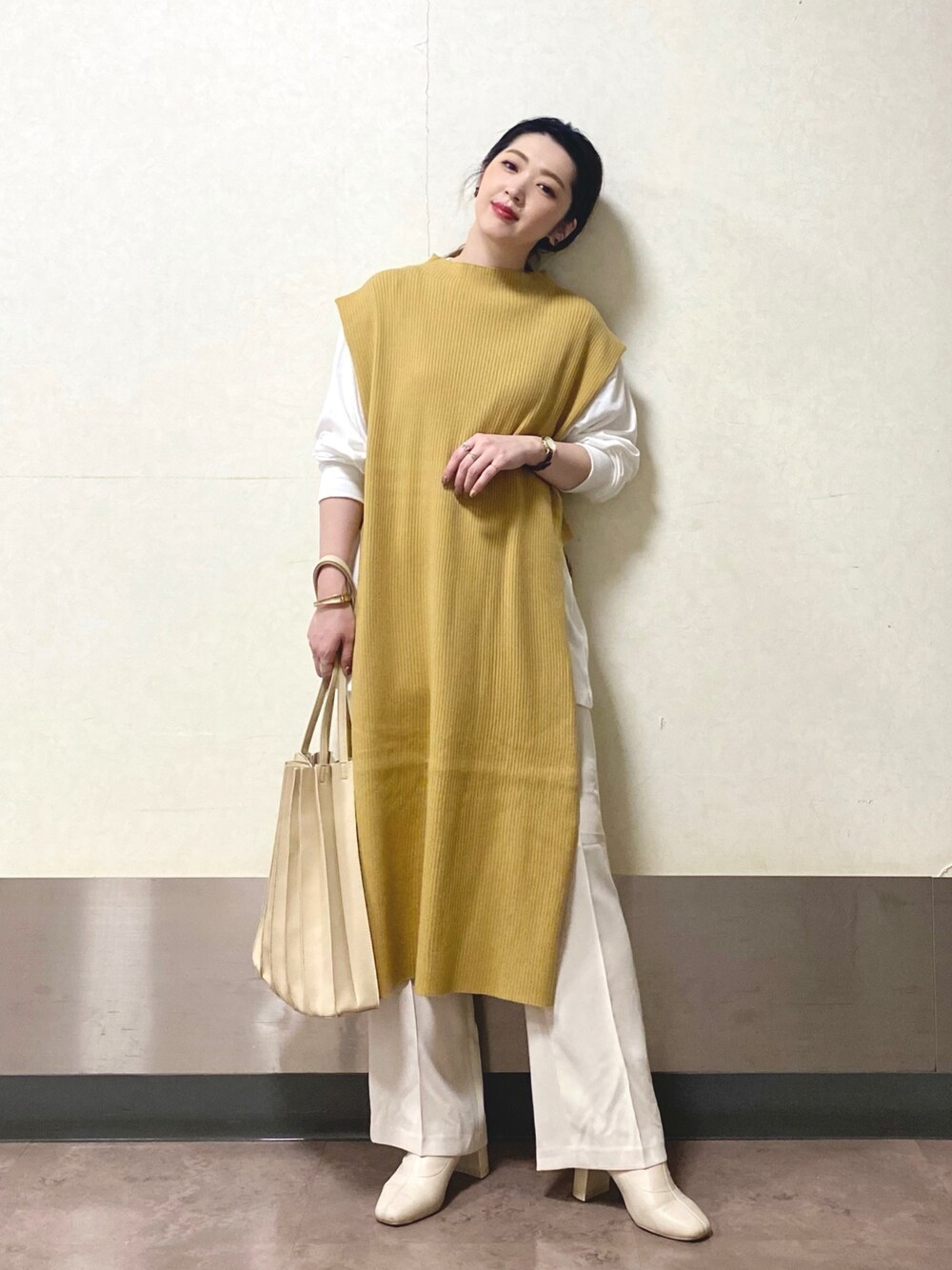 かおぽ (LOWRYS FARM 佐野プレミアムアウトレット)のワンピース「ニットベストワンピース 893362」を使ったコーディネート