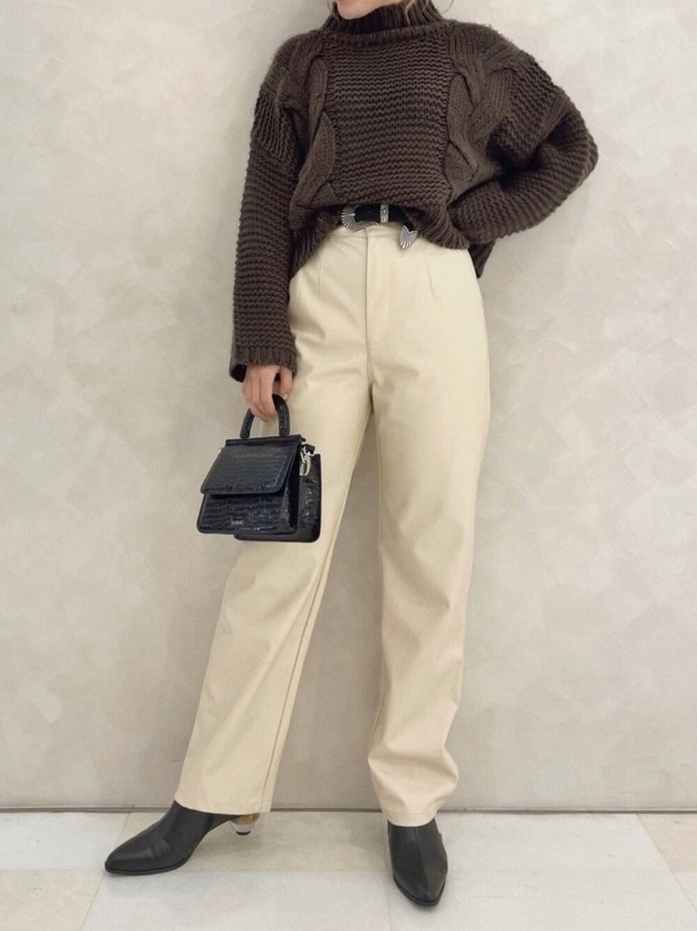 YUUKA のその他パンツ「レザーライクストレートパンツ」を使ったコーディネート