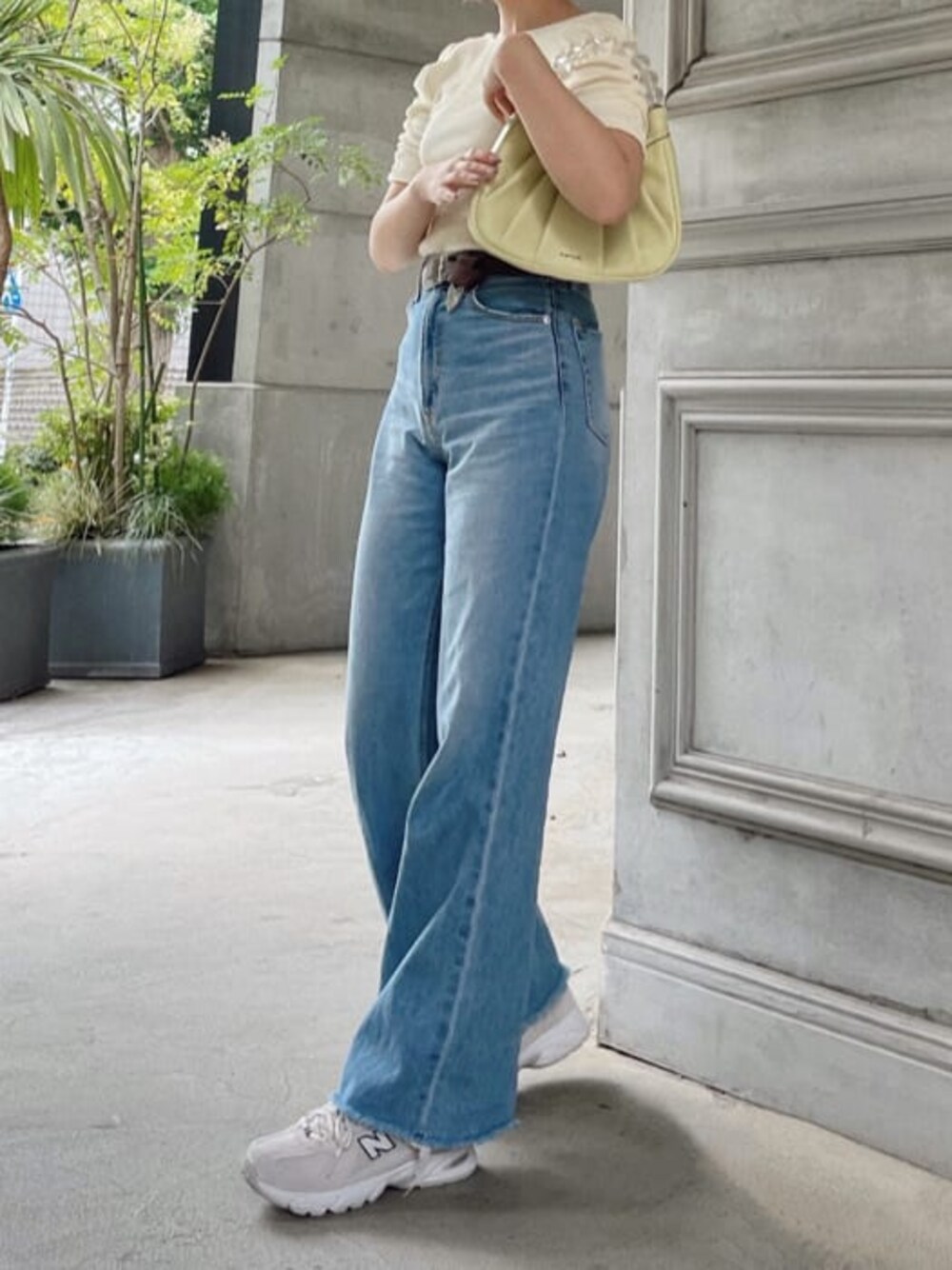 大人気のワイドパンツで大人ガーリーな着回しコーデ✿ Tops ▷ 細かいギャザーのパフスリーブデザインがかわいい♡ ボリューム感がある分、二の腕をカバーしてくれます♩私は背中開きの方で着用しましたが、前後で着れる2WAYなので前が開いてる方で着てもかわいいですよ! Denim ▷ 不動の人気のシンプルデニムが待望の再入荷✿ ヴィンテージデザインが絶妙で王道に1本は持っておきたいアイテムです!162cmの私でスニーカーで着用できます。スニーカーで合わせても、安定に脚長効果抜群✌︎ 自信持ってオススメできるデニムです。Bag ▷ EVRISといえばデザインバック♡ 色味も絶妙でかわいくて、なんといってもハンドル部分がクリアなのが珍しい✌︎ 夏に持ってこいのオススメバックです。肩がけできるくらいの、持ち手の長さです。