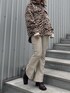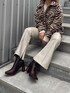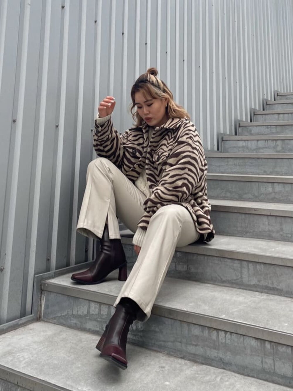 トレンドの柄アイテムが主役の大人きれいめコーデ♡ Shirts ▷ 薄めのですがウール素材で保温性があり暖かいシャツジャケットです。ベージュベースのゼブラ柄で、かつ柄が大きめなので柔らかい印象になり肌馴染みもすごく良いです♡ 後ろが丈長めになっていて、162cmの私だとお尻が少し隠れるくらいの長さです。低身長(150〜155cmくらい)の方だと1枚でワンピ風で着用できます♡ Knit ▷ さりげないほんのりラメがかわいいニット♡ もちもち素材でチクチク感も全くなく着心地抜群です♩ EVRISのニットの中でも1番ショート丈です。Bottoms ▷ マットなフェイクレザー生地がとにかく大人っぽい♩ハイウエスト+丈長めのデザインでとにかく脚長効果抜群✌︎ 腰回りが少しゆとりあるタイプなのでこれからの季節ニットとかインナーをインするのにも最適で嬉しいポイント♡ 内側の裾にスリットが入っていて歩いた時にブーツがチラッと見えるのがかわいい♡ Shoes ▷ 2色のブラウンカラーがポイントの大人めブーツ。太めのスクエアトゥがおしゃれで、ヒールが低めなのでとっても歩きやすいです。