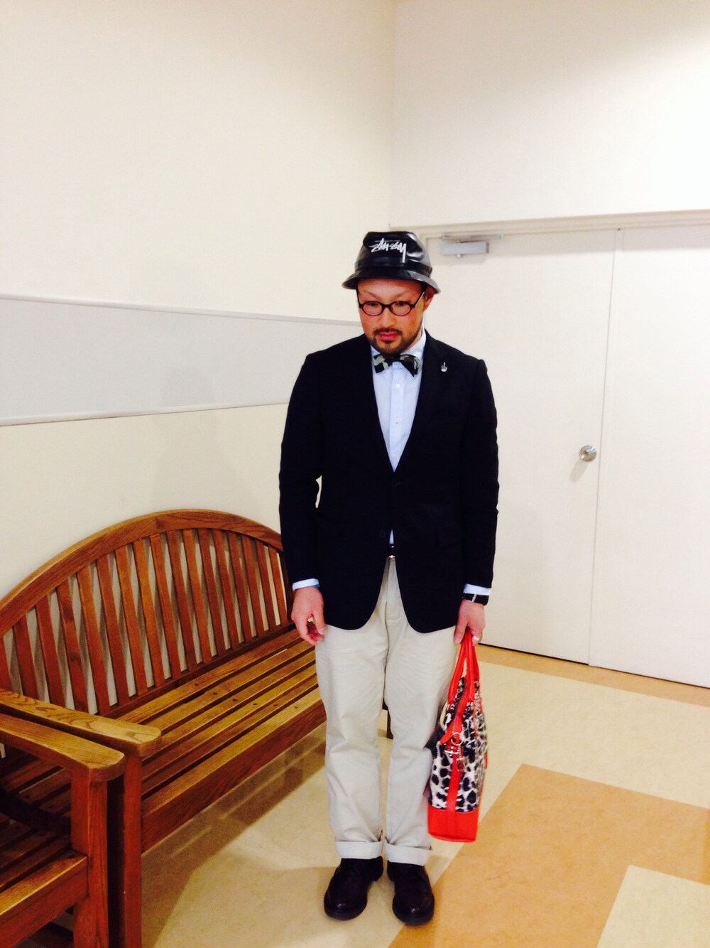 最近週末寒い…東北の春はまだまだです。 帽子:ROCSTAR×STUSSY ジャケット:UNIQLO シャツ:Mr.ジェントルマン チノパン:MACKDADDY 靴:MACKDADDY×LOAKE バック:コーチ ピンバッチ:supreme ネクタイ:Mr.BATHING APE
