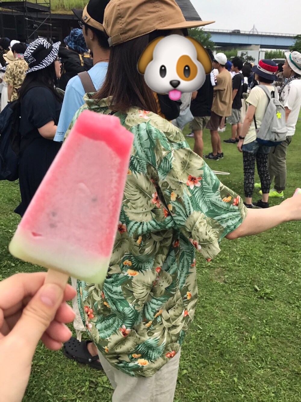グリーン系のトップス、グレー系のパンツ、ベージュ系の帽子を着用したレディースの夏コーディネートの1枚目の写真