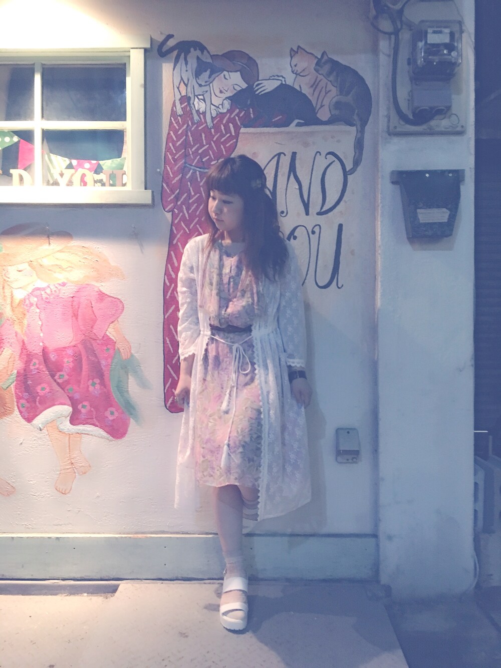 花柄の古着のワンピースにレースガウンでガーリーに🌸