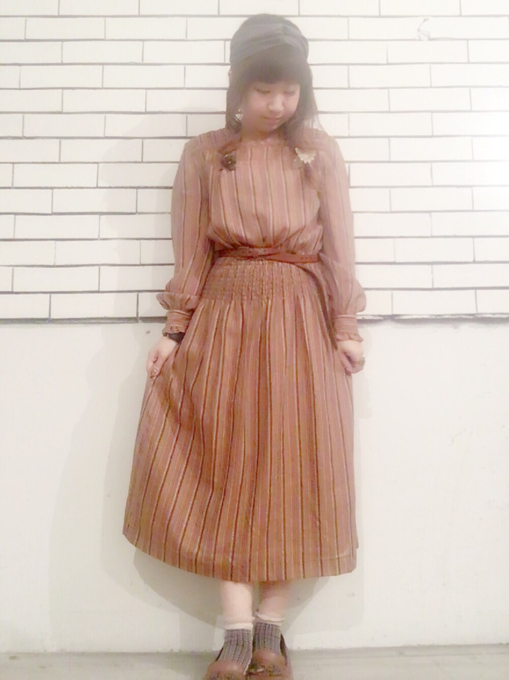 秋コーデ* 古着のストライプワンピースを1枚でさらりと☺︎