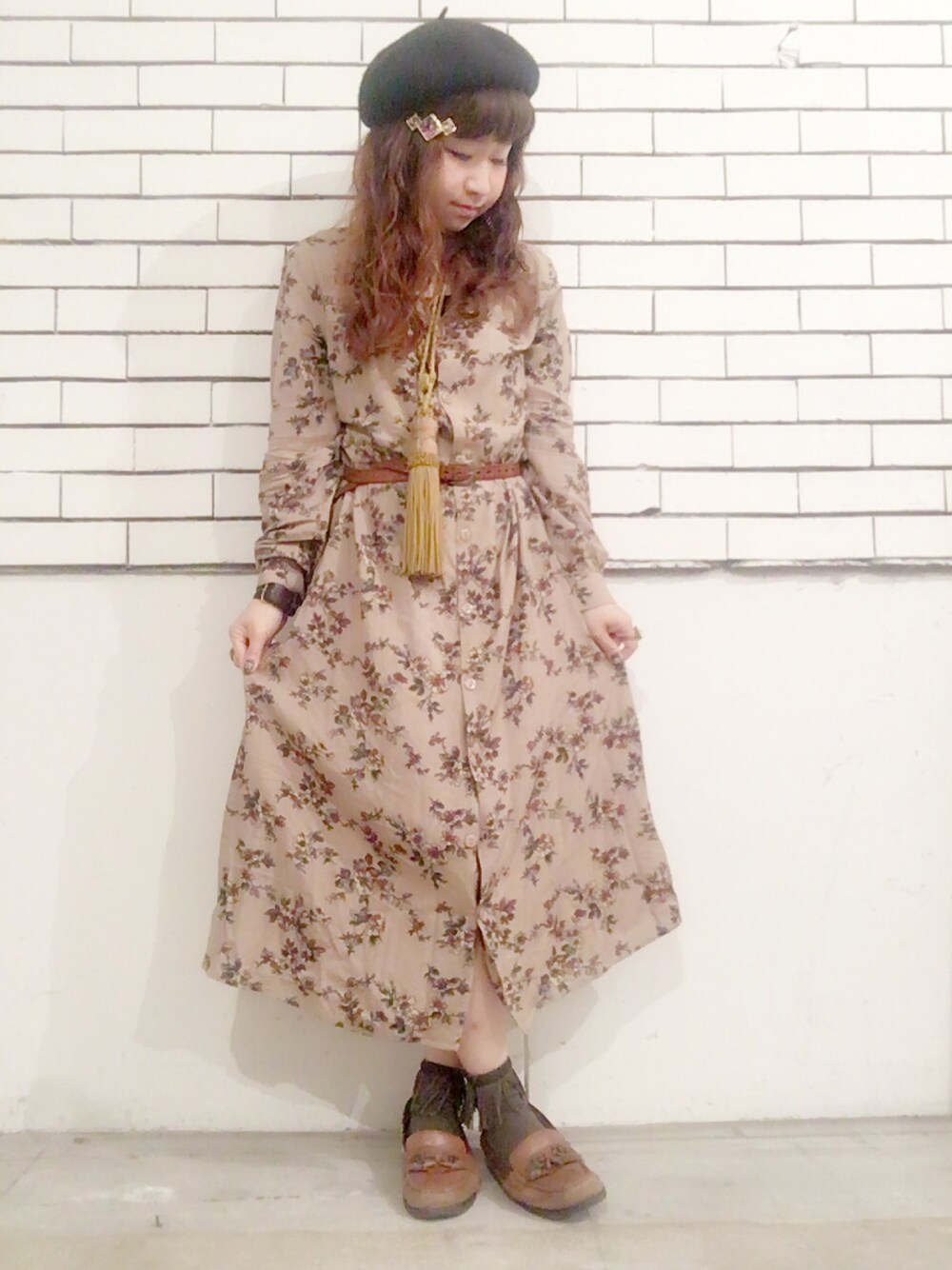 1年ぶりにパーマをあてました☺︎ レトロ調の花柄ワンピースにvintage小物を合わせて*.・