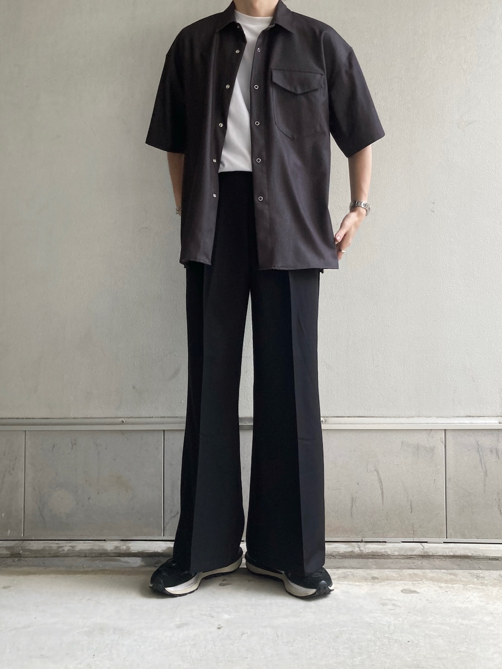 ゆう インスタ7万人のシャツ/ブラウス「【CLEL】TR Loose Half Sleeve Regular Collar Shirt / TR ルーズ半袖レギュラーカラーシャツ【セットアップ対応】」を使ったコーディネート