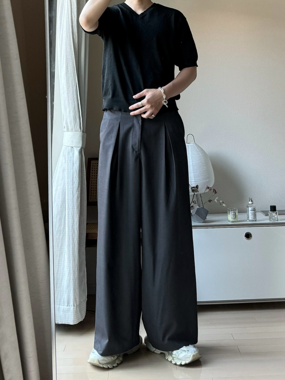 ゆう インスタ7万人のスラックス「【CALLNE】 Box Tuck Relaxed Wide Pants / ボックスタックリラックスワイドパンツ」を使ったコーディネート