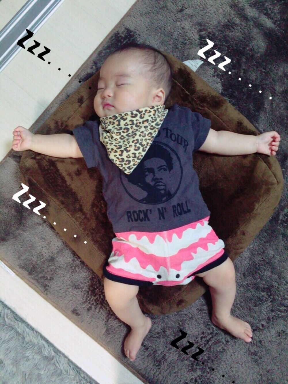 朝寝中〜 起きたら今日は支援センターで友だちと 遊びます♡☻ 動きやすいコンビネゾンで♪